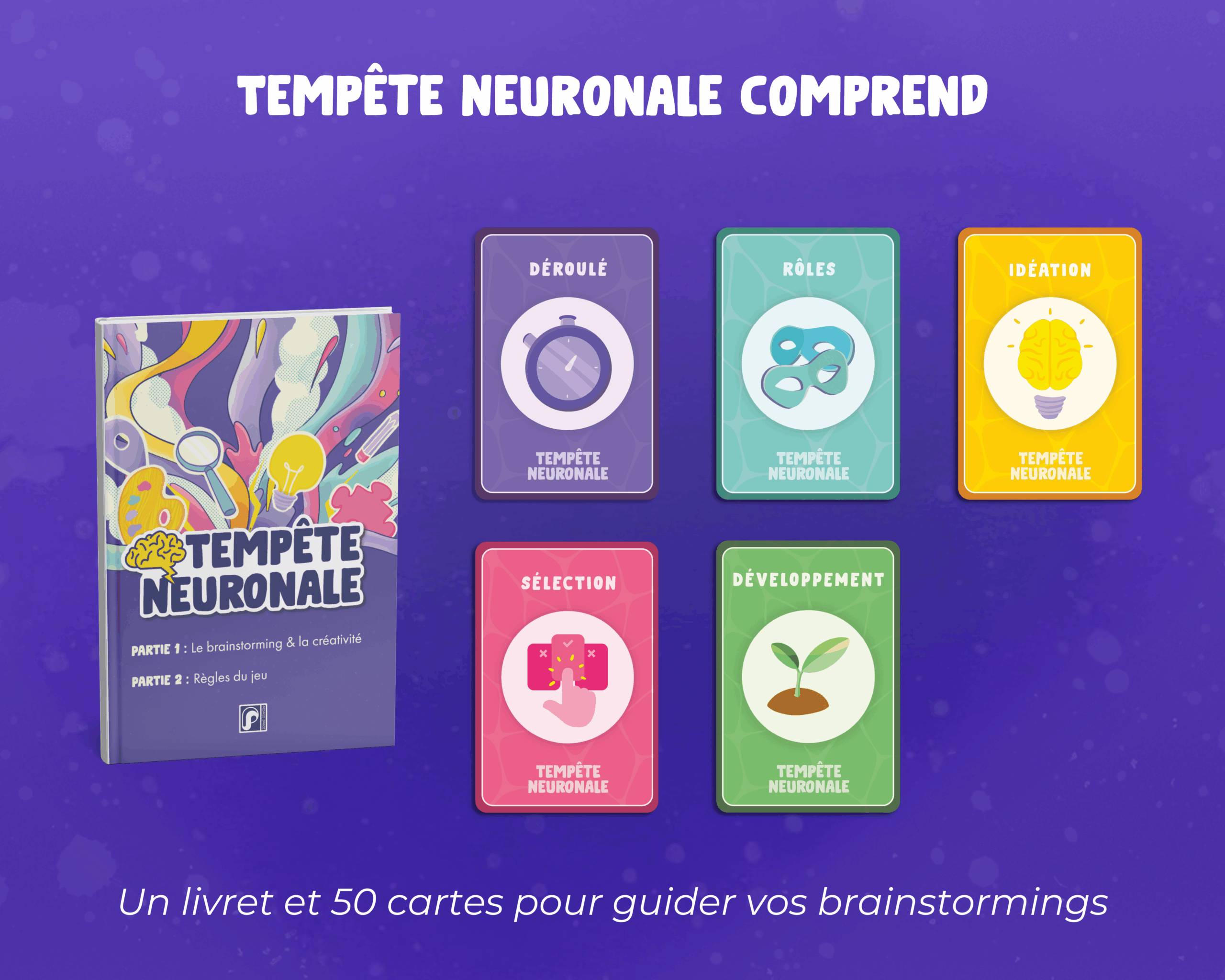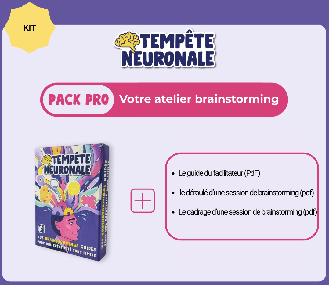 Le Kit Atelier Brainstorming – Tempête Neuronale a été conçu pour sécuriser et professionnaliser l’animation de vos ateliers, quel que soit votre domaine d’activité.
