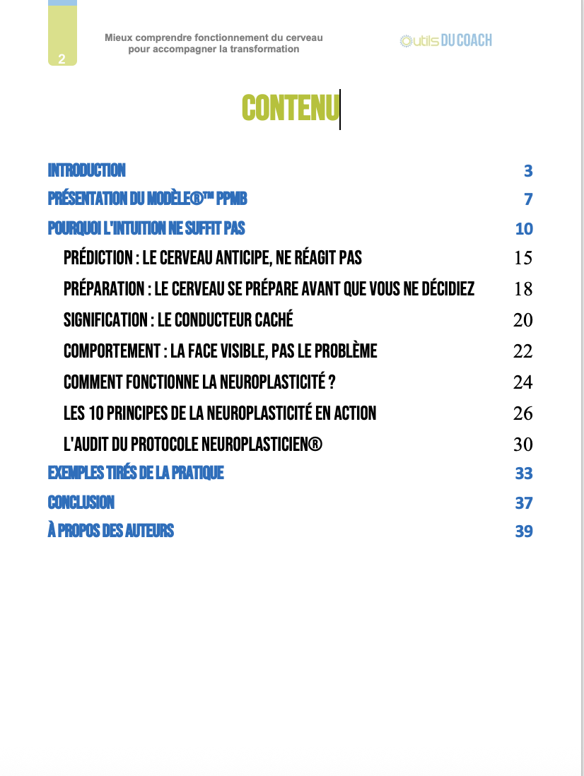 Cet e-book avancé s’adresse aux coachs et aux professionnels qui souhaitent aller au-delà de la prise de conscience et des insights, afin de comprendre comment un changement comportemental durable se construit dans le cerveau.