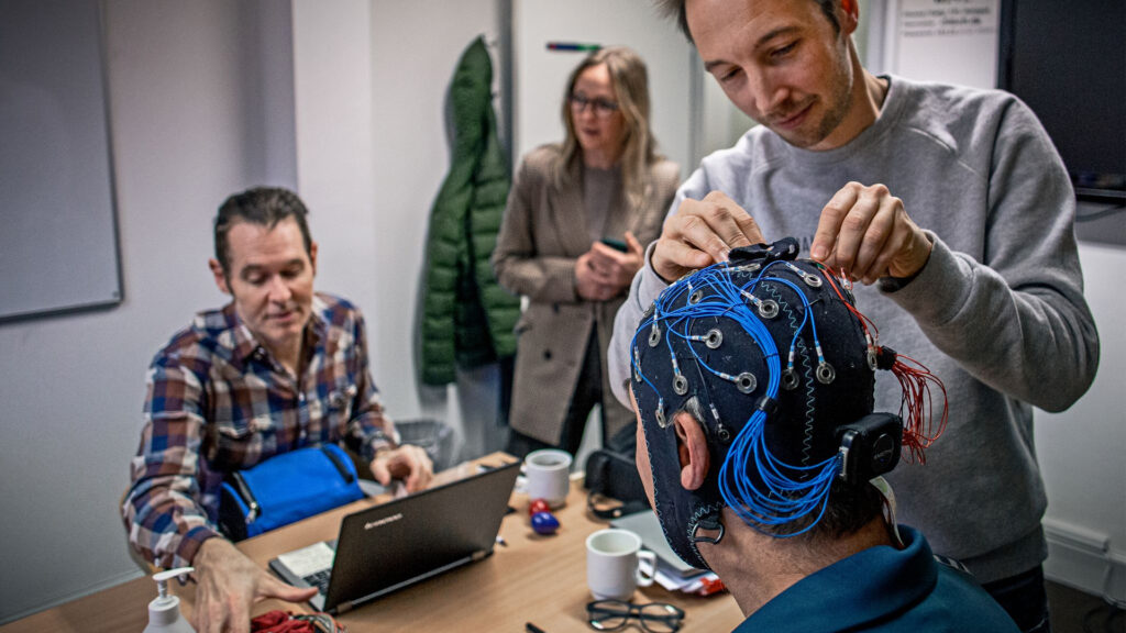 Une séance d’imagerie cérébrale EEG permet de mesurer et visualiser, en temps réel, l’activité du cerveau pendant une courte série d’exercices simples. Le rapport généré met en lumière les habitudes cérébrales du client : quels sont les talents cachés ? les angles morts ? Et comment reprendre le contrôle ?